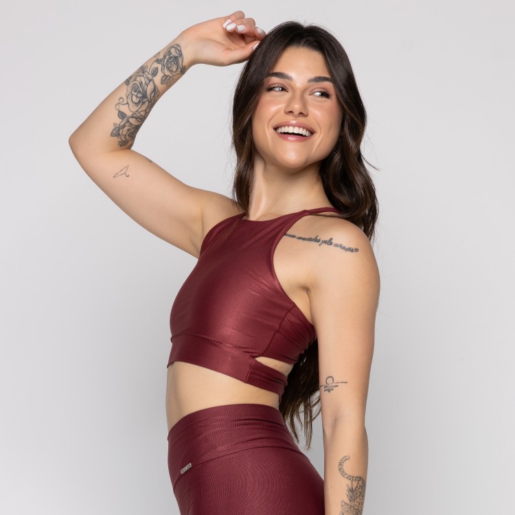 • Top Fitness Canelado Strappy Com Recortes