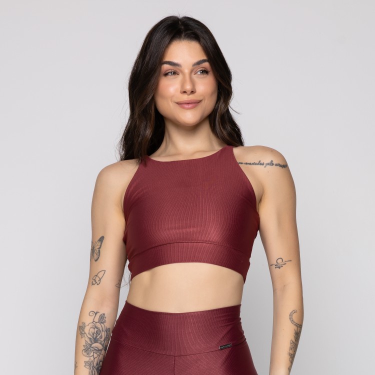• Top Fitness com Alças Cruzada Canelado