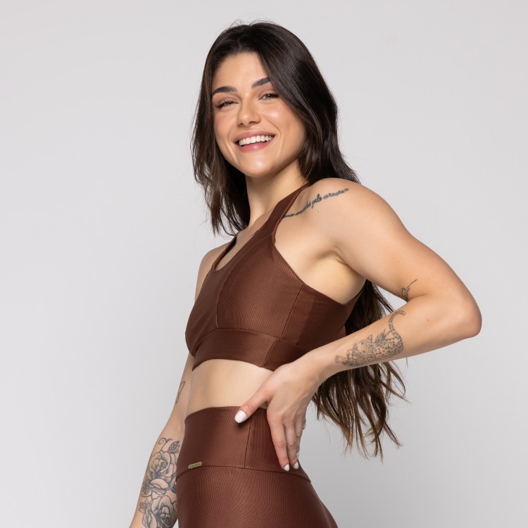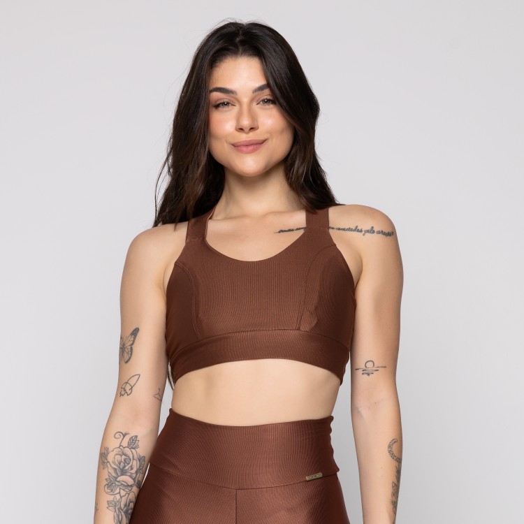 Top Fitness Alça Larga Cruzado nas Costas Canelado