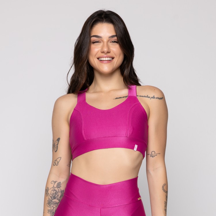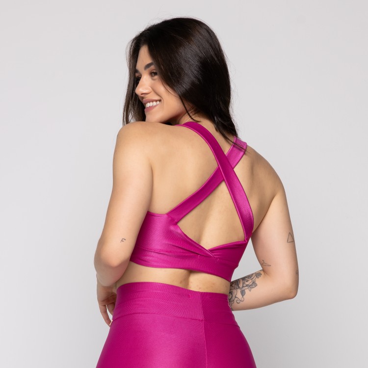 Top Fitness Alça Larga Cruzada nas Costas Pille Canelado