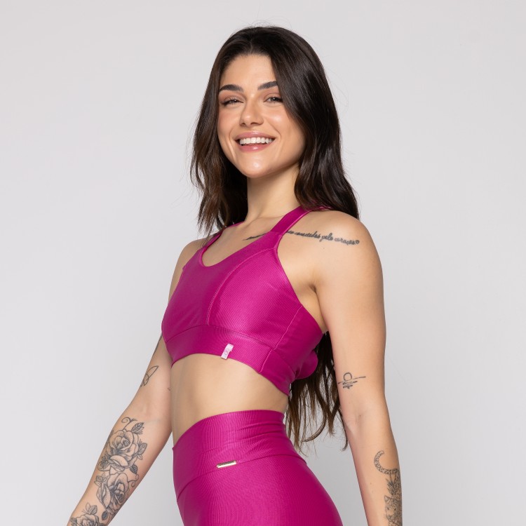 • Top Fitness Alça Larga Cruzada nas Costas Pille Canelado