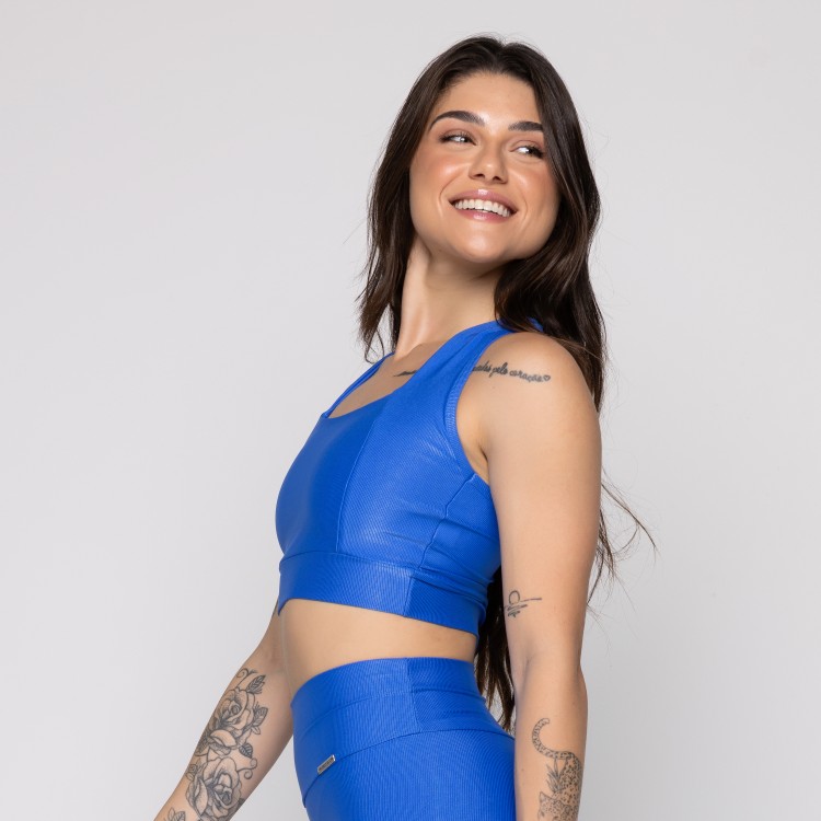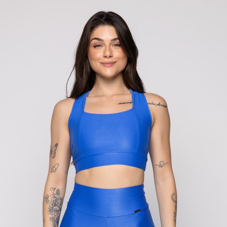 Top Fitness Com Alça Frontal Cruzada Canelado