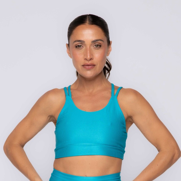 • Top Fitness Canelado Strappy Com Recortes