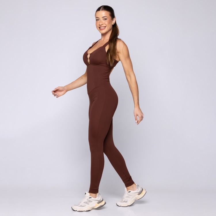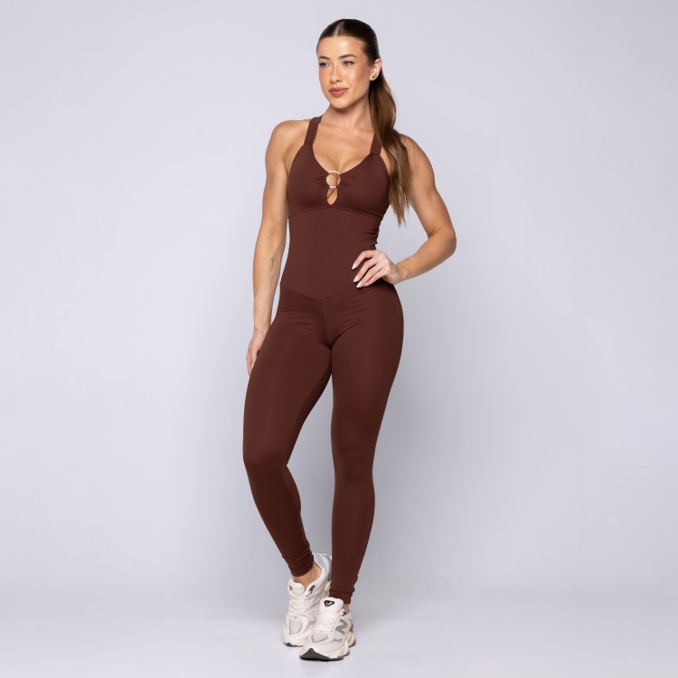 • Macacão Fitness Decote Frontal Argola Liso