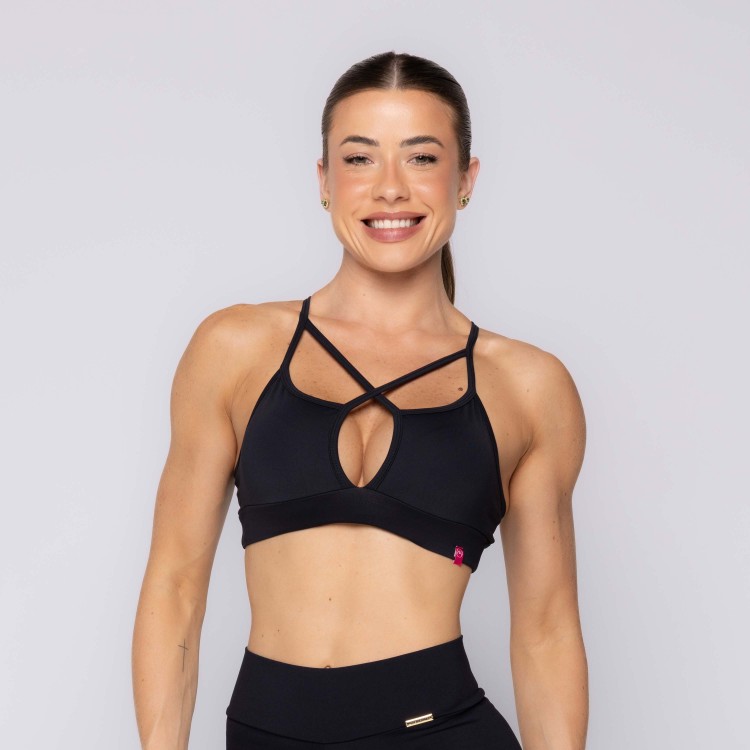 Top Fitness Alça Larga Cruzado nas Costas Canelado